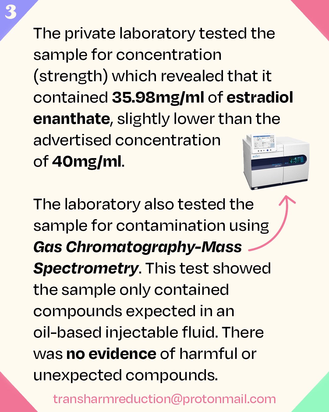 - Sample contained 39.58mg/ml of estradiol cypionate and 1.37mg/ml of estradiol valerate.
