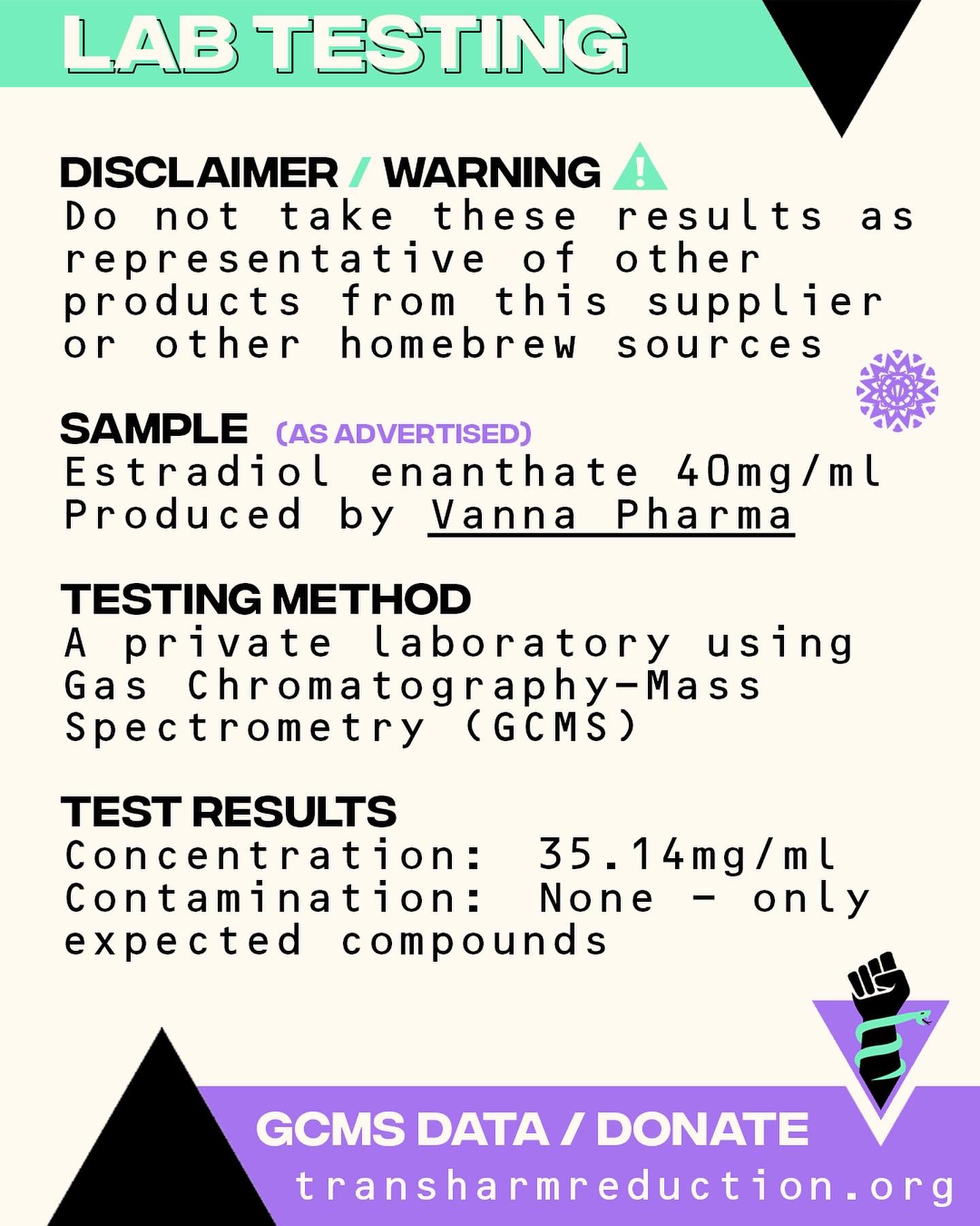 Vanna Pharma is a small British team producing a few forms of Liquid Estradiol. They've been operating since mid-2022 and have garnered a positive reputation within the British Trans DIY community. While we do not know their credentials, we know they're a small group of trans people doing this with a reliable well-documented process and they provide ample information, qualifications and medical warnings going above and beyond to make sure their customers are well informed. Their product is also extremely cheap and their delivery is quite fast being domestic.